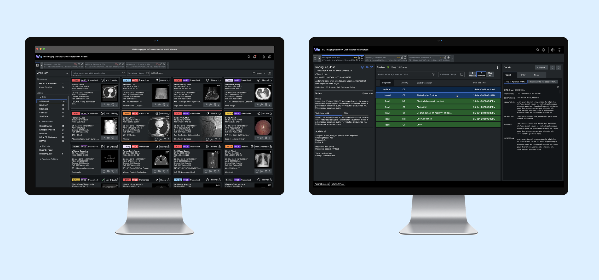 It’s very rare for a radiologist to only use one screen at their workstation, We also needed to make the design work in both landscape and portrait at the same time, and across 2-9 screens. Based on feedback, the worklist become the home screen and all patient screens would open on the secondary screen if they had one. We worked closely with developers to make sure this design would be responsive. I defined minimum widths and height of the modules by laying out the necessary information and testing it on both portrait and landscape layouts. The patient page all about one single pane of information that is being pulled from 3-4 different data sources, presented as one. How radiologists want to view data is highly preferential. To accommodate this, users can set up their own “workspace”. And can display as little or as much users as desired. While it can seem overwhelming to non-radiologists, radiologists like to see the data all laid out. In the future, we would like layouts to be laid out based on diagnosis type.
